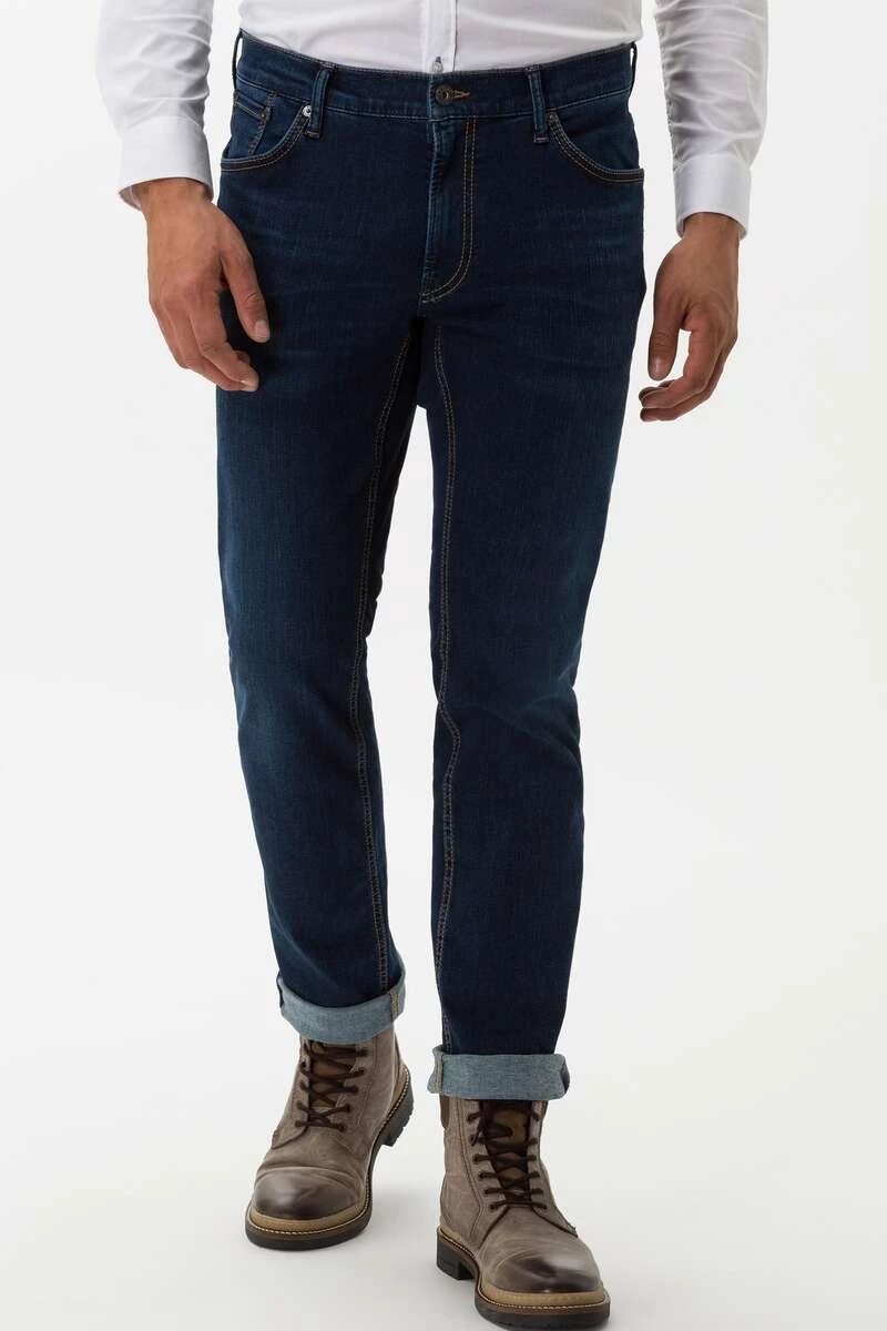 Die BRAX Herren Jeans mit kernigen Look und einem zeitlosen Design. Die Five-Pocket-Jeans in blau zeichnet sich durch eine ausgewogene Struktur und einem innovativen Denim-Gewebe aus einem raffinierte Baumwoll-Mix aus 92% Baumwolle / 6% Polyester / 2% Elasthan aus. Die Passform der Jeans ist der bewährte Slim Fit Schnitt.
