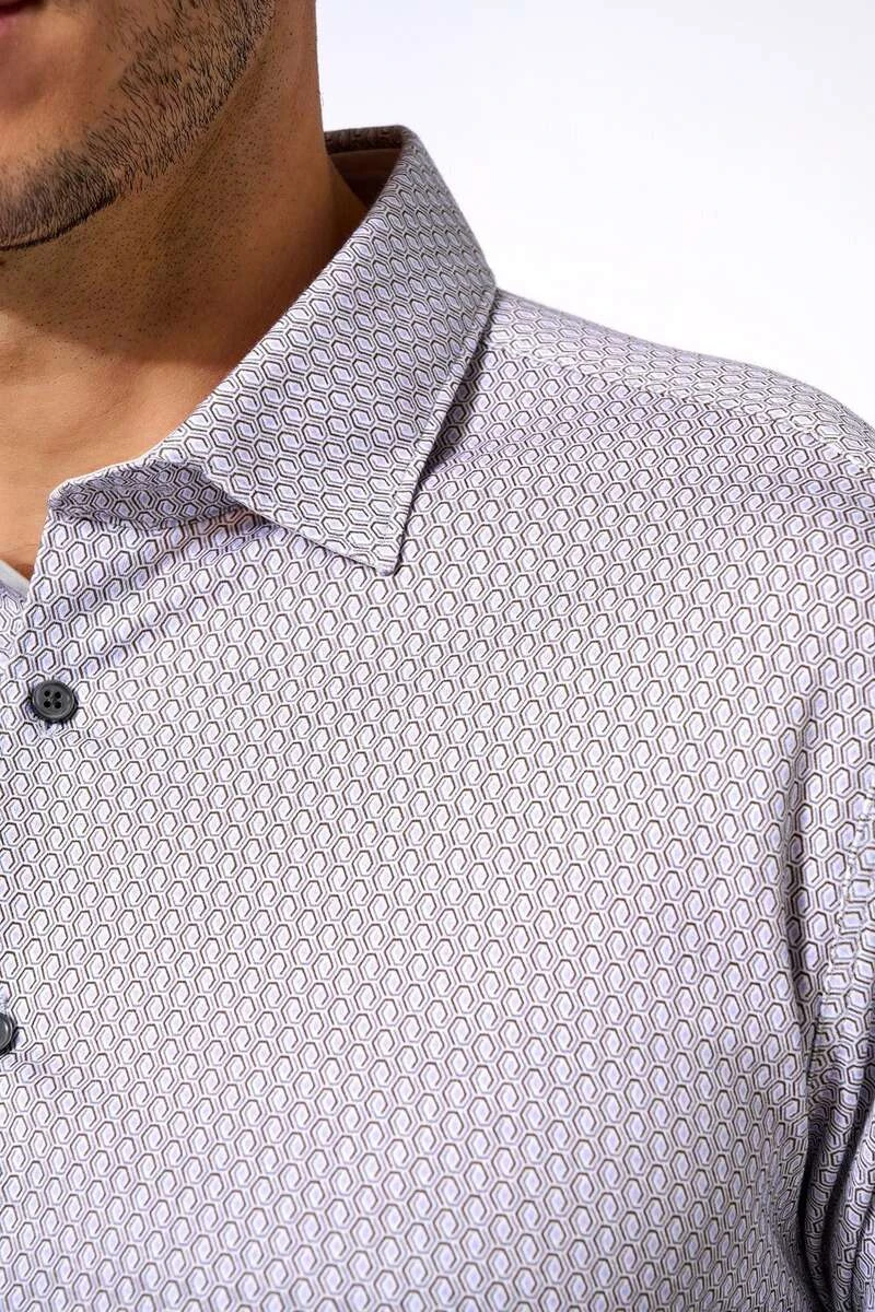 Desoto Slim Fit Jerseyhemd in der Farbe blau/beige/weiß, Gemustert