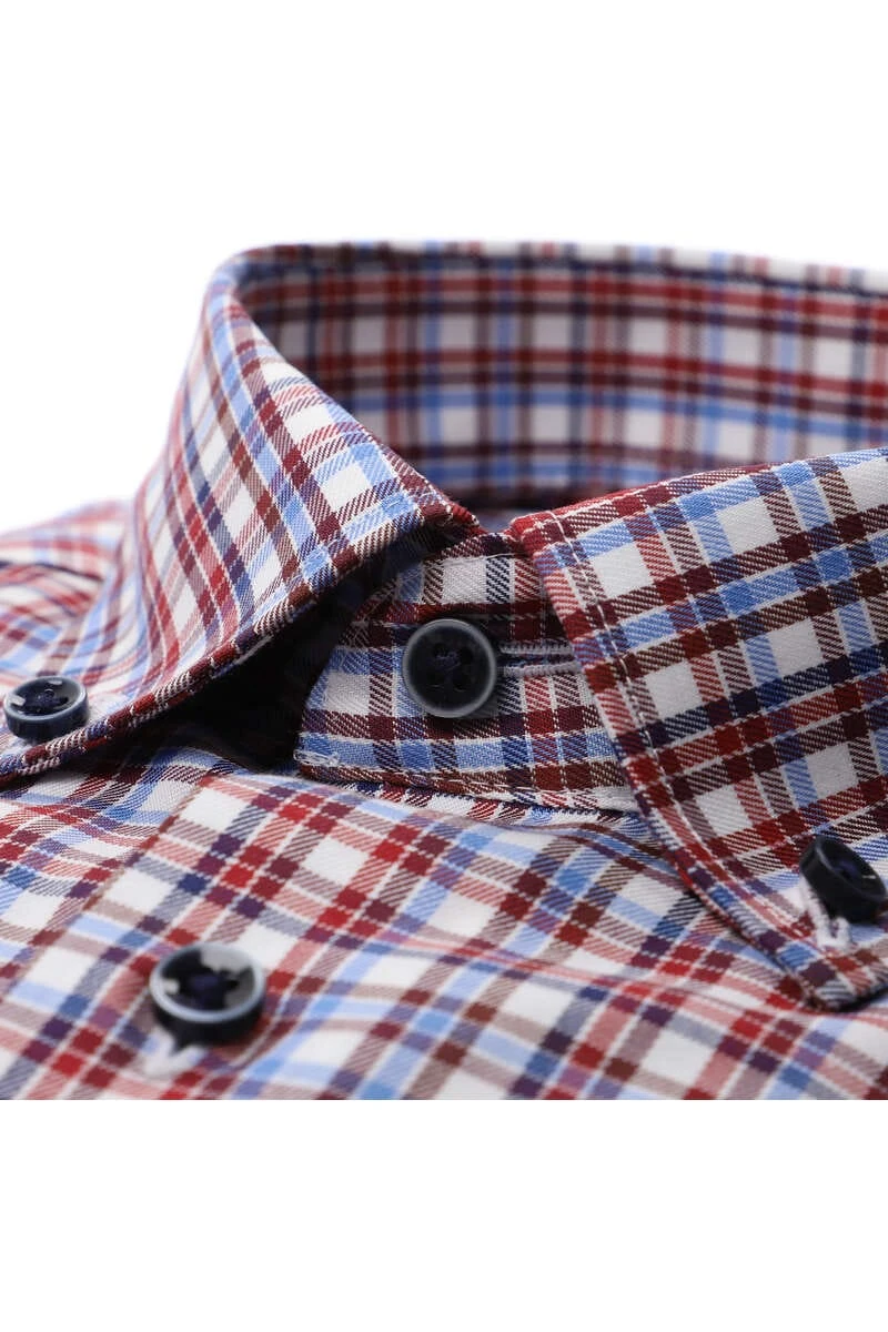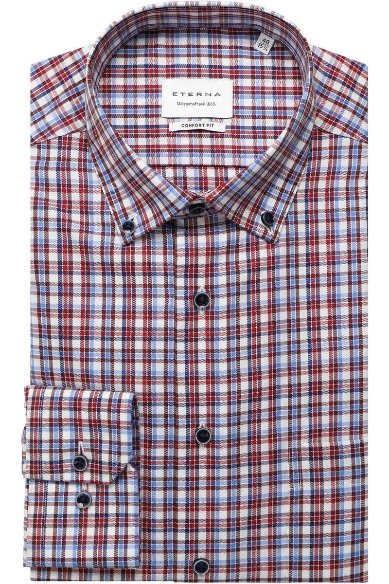Ein ETERNA Comfort Fit Hemd mit Button-Downkragen, in der Farbe bordeaux – Kariert. ETERNA Comfort Fit Hemden sind selbstglättend beim Tragen und stets Bügelfrei und knitterfrei.