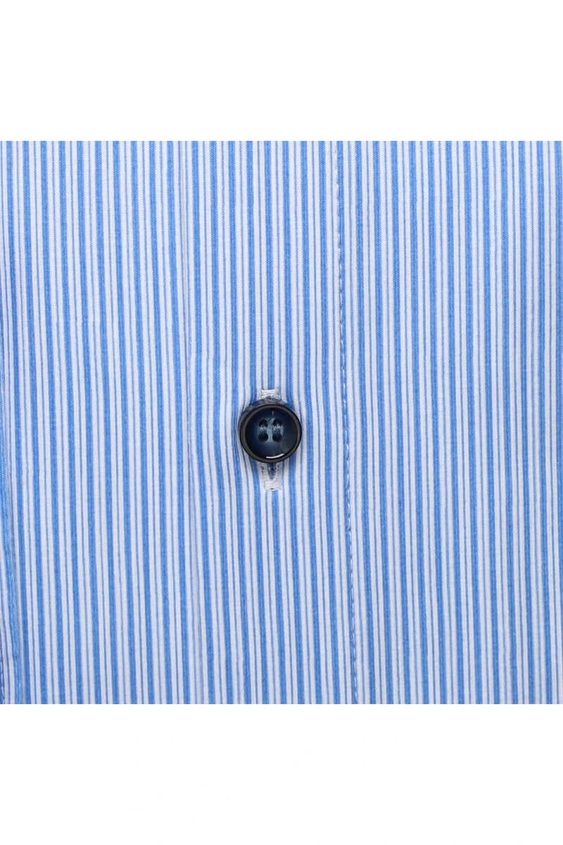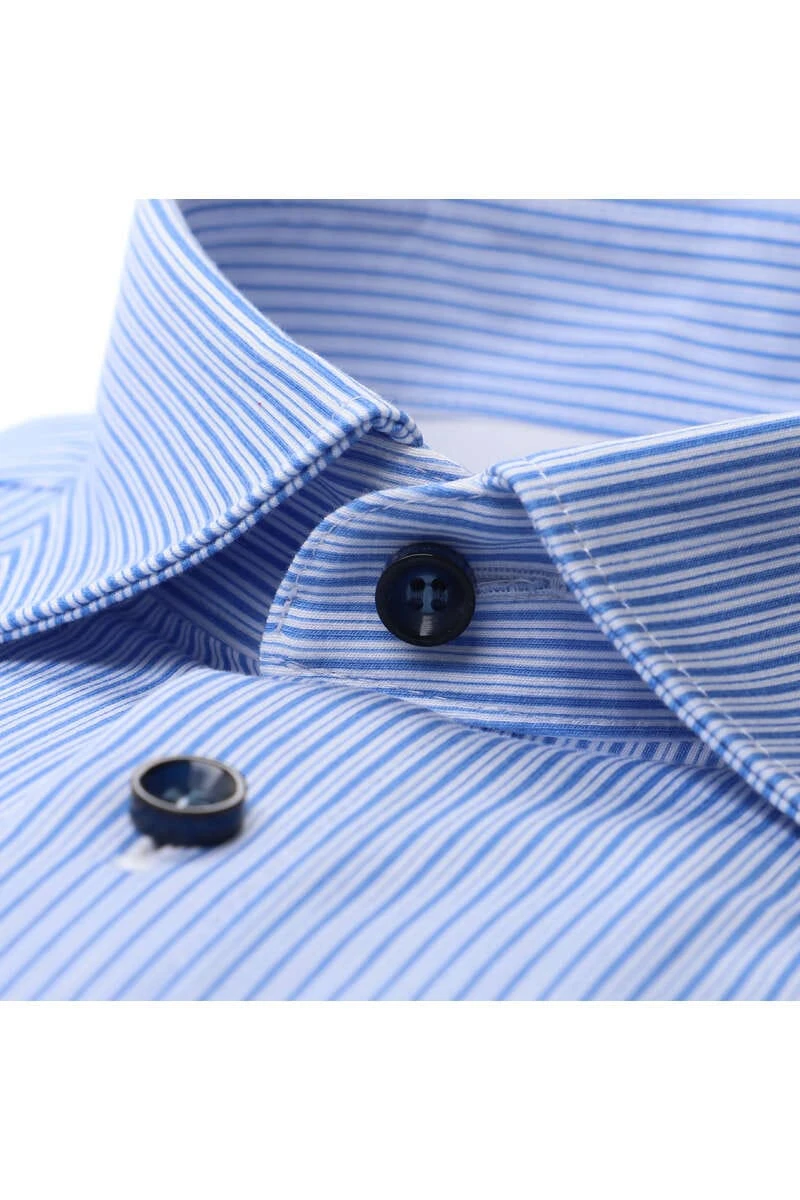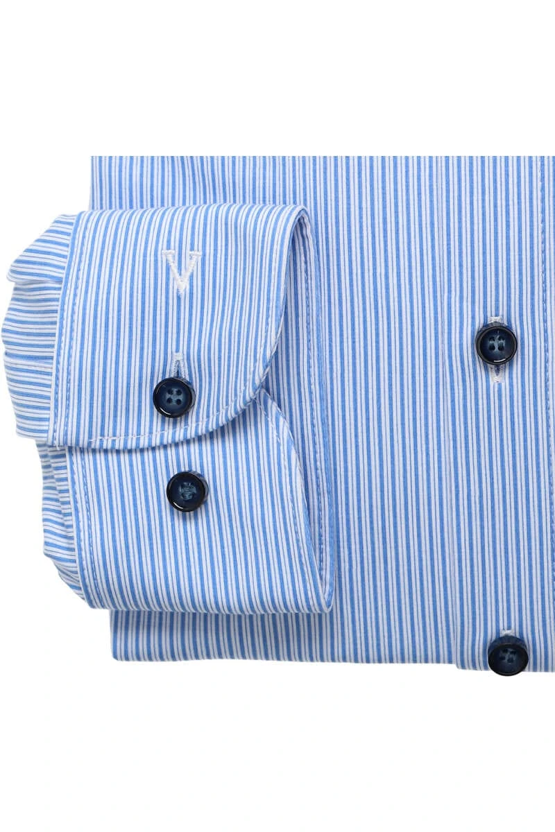 Das Marvelis Modern Fit Hemd (früher Slim Line), Pflegeleicht mit einem New Kent Kragen, in der Farbe bleu/weiss – Gestreift. Marvelis Modern Fit Hemden sind leicht tailliert und eigenen sich hervorragend als Businesshemd, nicht zuletzt da die Hemden knitter- und bügelfrei sind. Garantierte Marvelis Qualität geprüft nach Öko-Tex Standard 100 bürgt für einen hervorragenden Tragekomfort.