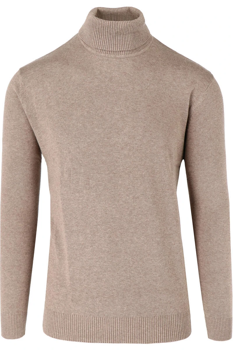 Hochwertiger Redmond {#knit_type#} Rollkragenpullover in braun in klassischer Passform aus 100% Baumwolle.