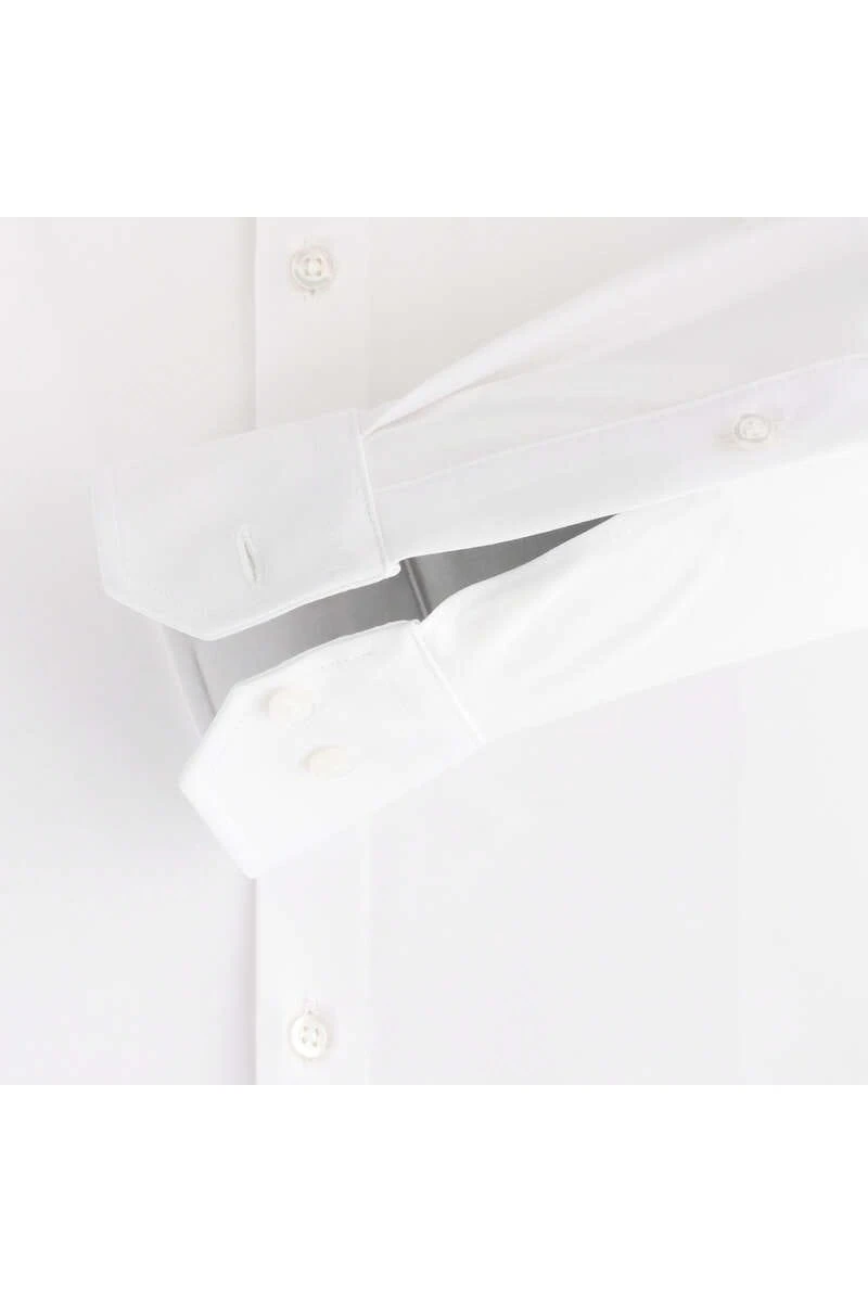 Dank des modernen Schnitts in taillierter Form, dem leichten Glanz durch den Jersey-Stoff sowie dem modernen Kent-Kragen entsteht die interessante und hochwertige Optik. Die Farbe weiss – Einfarbig ist unkompliziert und zeitlos und passt zu einem Anzug genauso gut wie zu einer Jeans in der Freizeit. Alles natürlich 89% Baumwolle / 11% Elasthan.